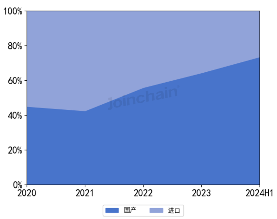 图表 14 2020-2024年上半年我国基因测序仪国产/进口品牌占比情况