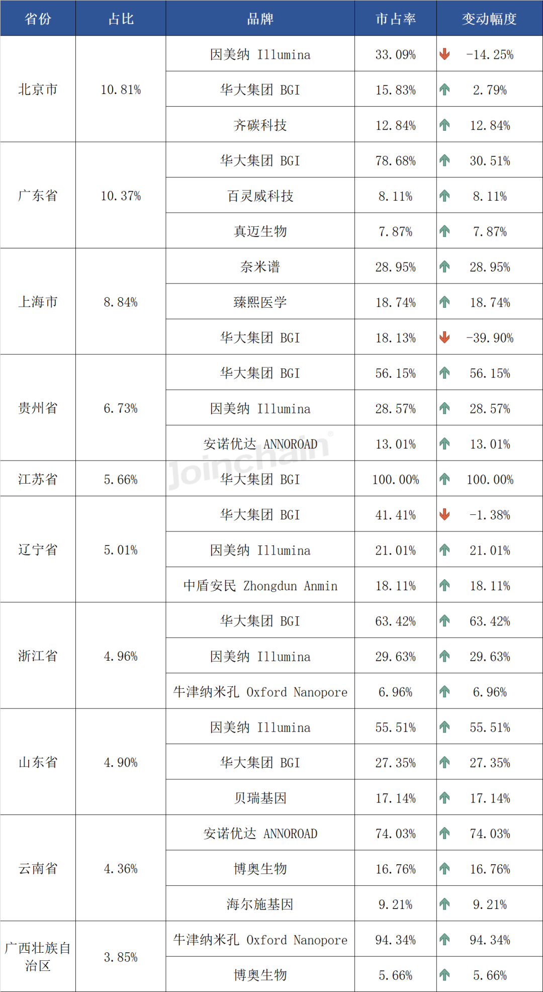 图表 10 2024年上半年我国基因测序仪top10省份品牌市场占比情况